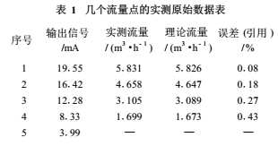 流量計廠家在出廠檢驗**中都把實測的幾個流量點的原始數(shù)據(jù)以表1方式給出,從中可見實測的引用誤差都遠(yuǎn)遠(yuǎn)小于*大允許誤差。表1的EMF量程為6m³/h(100L/min),輸出電流為4~20mA;且在滿量程值50%以上的測量點精度較,而在滿量程值1/3以下測量點精度低。