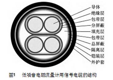 在石油化工、冶金、食品飲料、制藥、造紙、染料等眾多領(lǐng)域,通常采用污水處理流量計(jì)對(duì)流動(dòng)的各種混濁、懸浮液體介質(zhì)(水煤漿、泥漿污水、水泥混凝土漿、紙漿、金屬流體等)的流量進(jìn)行測(cè)量。污水處理流量計(jì)用信號(hào)電纜主要用于將污水處理流量計(jì)的實(shí)際測(cè)量結(jié)果信號(hào)傳輸至顯示系統(tǒng)。隨著污水處理流量計(jì)測(cè)量系統(tǒng)中電路的日趨復(fù)雜和對(duì)信號(hào)傳輸要求的逐步提高,傳統(tǒng)污水處理流量計(jì)用信號(hào)電纜的性能已無(wú)法滿足使用要求,因此本公司開(kāi)展了一種新型低噪音污水處理流量計(jì)用信號(hào)電纜的研制。