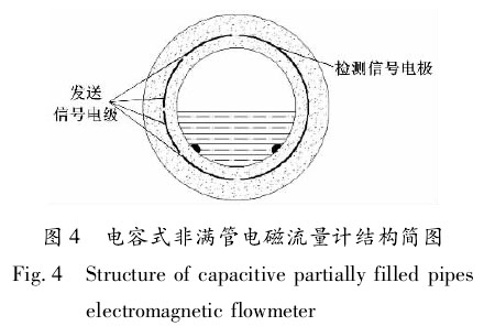 ②電容式非滿管生活污水流量計(jì)h。電容式非滿管生活污水流量計(jì)結(jié)構(gòu)簡圖如圖4所示。、檢測信號(hào)電極 發(fā)送信號(hào)電