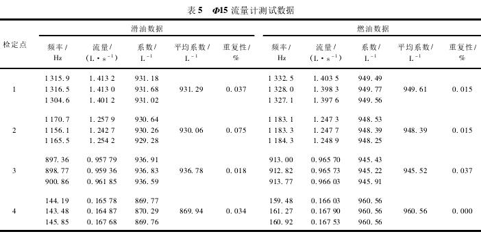 Φ15流量計測試數(shù)據(jù)如表5所示。