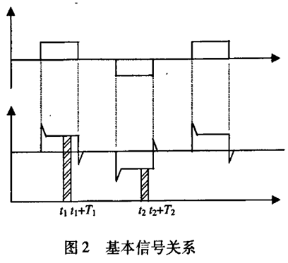 污水廠進水管道流量計一般都采用工頻交流電源供電,其電源電壓的幅值和頻率的變化都會給污水廠進水管道流量計帶來電源性干擾噪聲。對電源電壓的幅值變化,因采用多級集成穩(wěn)壓,一般而言電源電壓的幅值變化對電磁流量的測量精度影響不大。當電源電壓的頻率波動時,雖然其波動范圍有限,但對污水廠進水管道流量計測量精度影響較大。為了解決工頻干擾問題,實現(xiàn)對流體流速感應電勢e柚信號的準確測量,需利用以下基本關系:①勵磁周期為工頻周期的整數(shù)倍,即勵磁頻率為50/nHz(n為偶數(shù));②正負勵磁下的同相位采樣。圖2是對應低頻矩形波勵磁形式下的典型電勢信號形式,按上述關系在一個勵磁周期下,若假設t。和t:點為工頻干擾的等效干擾點,且采樣寬度T=T1=T2,則e –ab的基本算式為:,