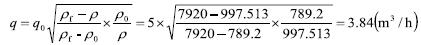 標準狀態(tài)下標定的雙氧水管道流量計的介質(zhì)密度、阻力系數(shù)、體積流量分別用0 、0 C 、q0 表示,則體積流量可表示為