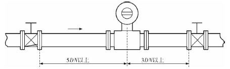 膠水管道流量表的安裝質(zhì)量對其測量結(jié)果的影響較大,因此在安裝時(shí)需要注意幾個(gè)問題。*先,膠水管道流量表直管段的選擇在配管時(shí)一定要按照要求進(jìn)行選擇,一般選擇流量計(jì)通徑與工藝管道通徑相同,即可滿足工程需要,而且安裝方便、壓力損失小,流量計(jì)直管段上游側(cè)的長度不少于5倍工藝管道直徑,下游側(cè)的長度不少于3倍工藝管道直徑(圖2)。但在流速太慢而又要求精度較高或需要變徑的應(yīng)用場合,可選擇通徑小于工藝管道通徑的流量計(jì),以提高測量精度,此時(shí)流量計(jì)上、下游必須加裝異徑管,且進(jìn)口異徑管上游側(cè)應(yīng)有長于10倍工藝管道直徑的直管段,下游側(cè)應(yīng)有長于5倍工藝管道直徑的直管段(圖3)。