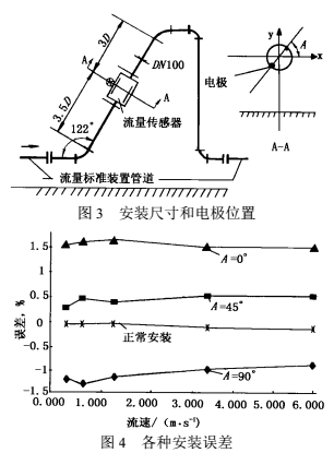 2)實驗證明電極軸線45°安裝比傳統(tǒng)水平安裝(A=0°)受彎管流動擾動影響有很大改善。