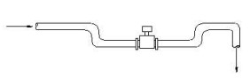 4.當(dāng)向下管道長度超過5m時(shí),在傳感器后安裝一個(gè)虹吸管或一個(gè)放氣閥。以避免低壓而可能造成的對(duì)測(cè)量管襯里的破壞。保證滿管,減少含氣量。