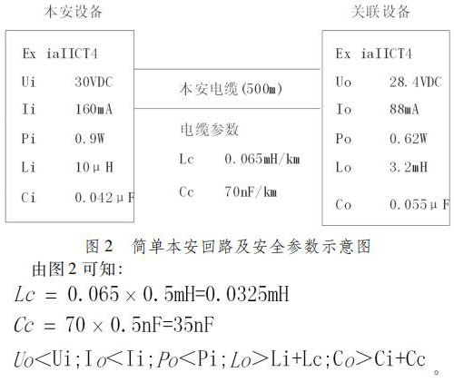 通過計算可知,本回路的安全參數(shù)均滿足不等式(1) ~ (5) ,因此本回路能通過本安回路計算,可以直接用于防爆區(qū)。
