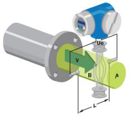 基本上,當(dāng)導(dǎo)電液體流過磁場時,會感應(yīng)出電壓。為了測量該產(chǎn)生的電壓(與流動的液體的速度成正比),使用了兩個彼此相對安裝的不銹鋼電極。