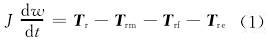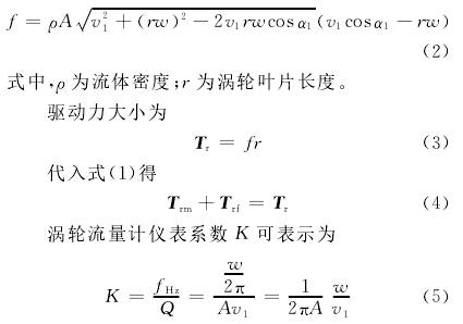 渦輪在轉(zhuǎn)動時所受的力矩大致可分:流體對渦輪的推動力矩Tr,機(jī)械摩擦力矩Trm,流體對渦輪產(chǎn)生的流動阻力矩Trf和電磁阻力矩Tre。渦輪運動方程可以表示為