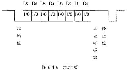 插入式電磁流量計(jì)等節(jié)點(diǎn)設(shè)備和站內(nèi)PC機(jī)間的通信采用異步串行通訊控制規(guī)程,并采用地址位喚醒握手協(xié)議。因此在協(xié)議中規(guī)定了傳地址和傳數(shù)據(jù)兩種不同的幀格式,如圖.64所示。地址幀和數(shù)據(jù)幀由11位構(gòu)成,幀格式為l位起始位,l位停止位,8位數(shù)據(jù)位,1位*9位。我們將*9位設(shè)定為“地址/數(shù)據(jù)指示位”,用來區(qū)分所發(fā)送/接受的幀信息是地址幀還是數(shù)據(jù)幀。*9位為1,表示PC機(jī)發(fā)送/接受的是“地址幀”*9位為O,表示主機(jī)發(fā)送/接受的是“數(shù)據(jù)幀”。命令幀與校驗(yàn)和的發(fā)送格式與數(shù)據(jù)幀相同,因此可由數(shù)據(jù)幀演化得到。