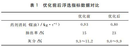 氣體轉子流量計制造過程優(yōu)化設計完成后,在原選煤廠進行為期三個月的工業(yè)試驗,并對優(yōu)化前后的浮選關鍵指標參數(shù)進行統(tǒng)計和分析。應用情況數(shù)據(jù)表明,經過優(yōu)化設計的浮選自動控制系統(tǒng),各關鍵浮選指標參數(shù)都有明顯提升,詳見表1