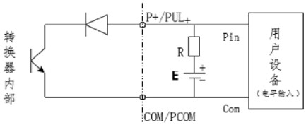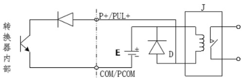 3.由端子 IN+和 IN-引出線接啟動(dòng)按鈕或啟動(dòng)控制信號(hào)(參見(jiàn)圖 3.7),用來(lái)實(shí)現(xiàn)定量控制啟動(dòng)同步。當(dāng)按一下啟動(dòng)按鈕,轉(zhuǎn)換器記錄當(dāng)前累積量,并根據(jù)定量值計(jì)算出目標(biāo)累積量,開(kāi)始計(jì)數(shù)。當(dāng)目標(biāo)值到,輸出繼電器信號(hào)。