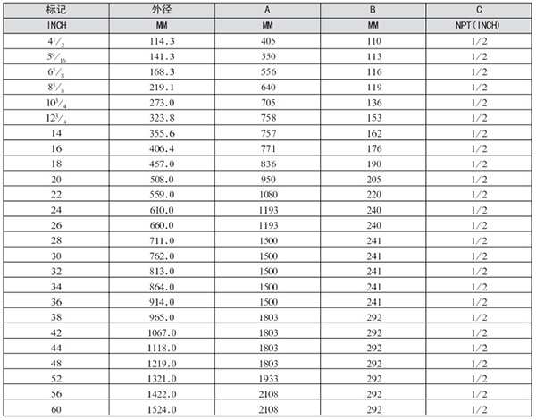 2.尺寸表中同一欄值有兩個(gè)并以/隔開,表示/下方的數(shù)值是以HG管法蘭尺寸計(jì)算所得。