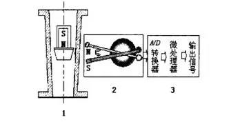 從以上原理分析可知,浮子的高度檢測(cè)是通過(guò)機(jī)電轉(zhuǎn)換單元精確測(cè)量懸浮在錐形管中的位置,通常通過(guò)磁鋼耦合,帶動(dòng)機(jī)械擺桿轉(zhuǎn)動(dòng),使角位移傳感器角度發(fā)生變化,輸出電信號(hào),通過(guò)對(duì)信號(hào)進(jìn)行處理,進(jìn)而換算處實(shí)際流量。浮子位置隨流量變化頻繁運(yùn)動(dòng),可見(jiàn)該機(jī)電轉(zhuǎn)換單元必須非接觸式的,機(jī)械磨損小,工作可靠穩(wěn)定,溫度特性好,線性度較高的才能保證輸出的精度。所以傳感器性能的提高意味著金屬管浮子流量計(jì)精度的提高。工況條件放寬,使浮子流量計(jì)能在更廣泛的工作環(huán)境中得到應(yīng)用。所以本文將對(duì)如何提高角度位移測(cè)量精度和環(huán)境適應(yīng)性進(jìn)行研究,如何提高測(cè)量的精度?