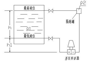 假設(shè)隔離液的重度為ρ2 (ρ2 >ρ1,并且隔離液不能與被測液體發(fā)生互溶)。