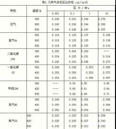 1) 同一氣體不同工況的流量換算 從表2的數(shù)值可以看出空氣、氬氣、一氧化碳、氮氣、氧氣壓力在1mpa以下、溫度在400k以下變化,定壓比熱容變化僅在1%~2%之間,大部分使用場所可不作換算;壓力溫度變換較大時也可利用式6計算,因為同一氣體兩種工況條件下定壓比熱容的比值與摩爾定壓比熱容的比值是相等的。