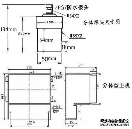 1.1分體式超聲波液位計(jì)尺寸圖如下: