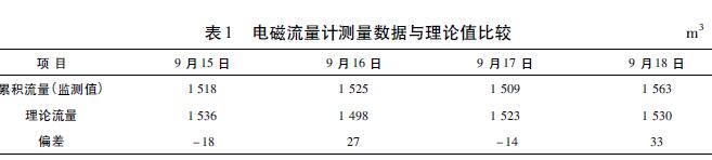 生活污水流量計(jì)價(jià)格與V錐流量計(jì)都適用于環(huán)境較惡劣的場(chǎng)合。在測(cè)量精度上,V錐流量計(jì)要比生活污水流量計(jì)價(jià)格高,而且安裝更靈活,對(duì)上、下游直管段的要求很短,但V錐流量計(jì)要比生活污水流量計(jì)價(jià)格昂貴得多。生活污水流量計(jì)價(jià)格的測(cè)量精度雖不及V錐流量計(jì),但在此應(yīng)用中完全可以滿(mǎn)足要求,而且運(yùn)行穩(wěn)定性和流量數(shù)據(jù)準(zhǔn)確度也很好。表1是使用生活污水流量計(jì)價(jià)格對(duì)園區(qū)某個(gè)企業(yè)監(jiān)測(cè)點(diǎn)連續(xù)4天的累積流量監(jiān)測(cè)數(shù)據(jù)與理論流量的對(duì)比。