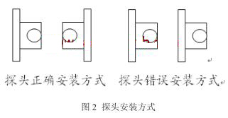d.探頭安裝時要注意方向。該廠流量計一度頻頻歸零,起先找了很多原因,如給流量計井做防水,更換耦合劑等,但是效果并沒有大的改善。結(jié)果是雖然頻頻更換耦合劑,但二次表中信號強度*好僅能達到44dB,且信號強度不穩(wěn)定,浮動較大,導(dǎo)致流量不夠準確。有時甚至涂抹一次耦合劑只能正常顯示數(shù)據(jù)一天時間。后來發(fā)現(xiàn)一個探頭在兩根鋼帶內(nèi)側(cè),另一個探頭在兩根鋼帶外側(cè),而兩個探頭應(yīng)該同在兩根鋼帶內(nèi)側(cè),如圖2所示。錯誤安裝方式的結(jié)果是聲波信號接收效果不好。將安裝方式更改之后,信號強度*好能達到70dB,并穩(wěn)定在60-70dB之間,從而保證了流量數(shù)據(jù)的準確性。