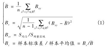 為了詳細(xì)的獲得井水流量計勵磁線圈及T型磁芯變化對流量計測量區(qū)域內(nèi)部磁場強(qiáng)度分布的影響情況,引入樣本平均值、樣本標(biāo)準(zhǔn)差、變異系數(shù)、磁場均勻度、感應(yīng)電勢值等磁場評價指標(biāo)分析傳感器勵磁線圈不同軸向長度時測量區(qū)域內(nèi)部磁場分布情況,如式(1)所示。式中,B為樣本平均值;B s為樣本標(biāo)準(zhǔn)差;B cv為樣本磁場均勻度;B c為樣本變異系數(shù)。在這4個磁場評價指標(biāo)中,樣本平均值越大越好,樣本標(biāo)準(zhǔn)差越小越好,磁場均勻度越大越好,變異系數(shù)越小越好。